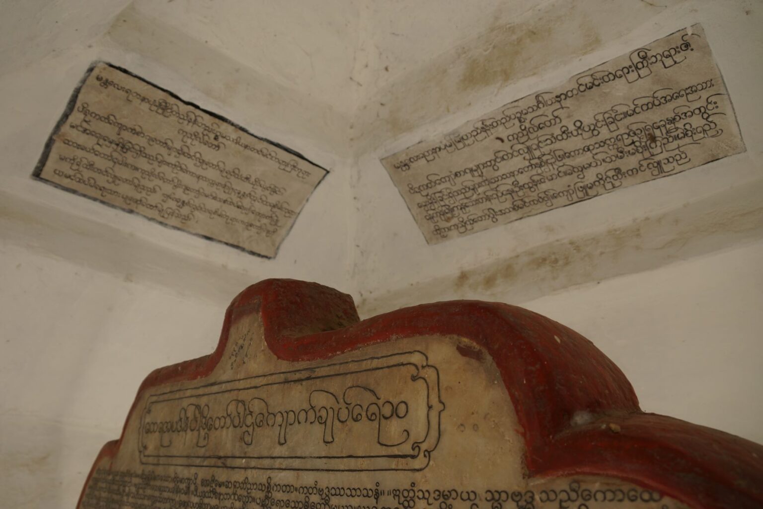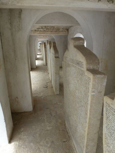 Additionally, the Kuthodaw Pagoda has an unusually rich collection of donative inscriptions, often small plaques written in Burmese attached to the outside of the mini-pagodas which house the marble stelae, or placed high on the inner walls. This collection, most likely numbering in the thousands, demonstrate the ongoing religious patronage and religious aspirations of generations of local Buddhists, and attest to the important role the site has played in the lives of those who patronized the site.