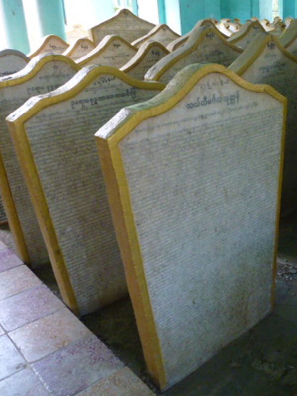 Some time after the Pali text was inscribed, four additional marble stelae were added to the site, meaning that the site has a total of 733 marble stelae. These Burmese language stelae have not yet been translated into English; however, they include descriptions of historical events relating to King Mindon and also list the contents of the Pali language stelae.