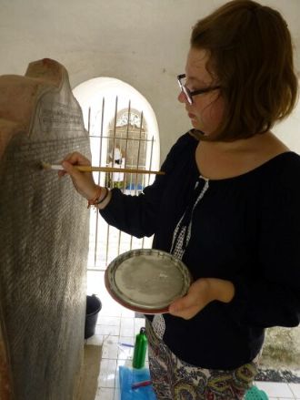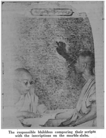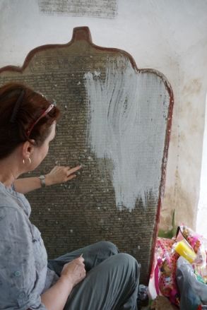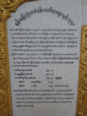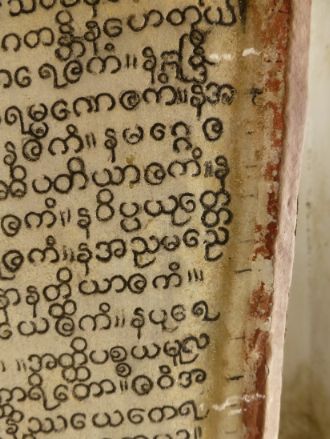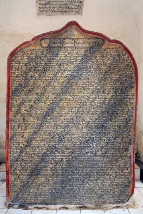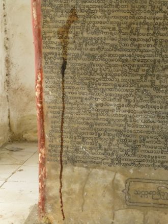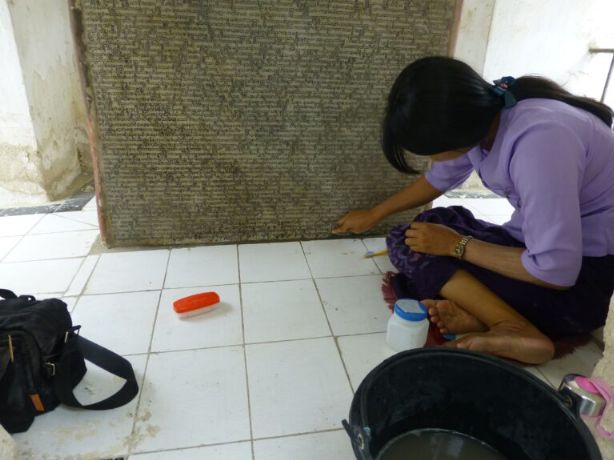 Gallery Aerial images Kuthodaw & Sandamuni PagodasKuthodaw PagodaKuthodaw & Sandamuni pagodas General site images Model of siteMain entranceBuddha shrine hall 1Buddha shrineMain stupa 1. Photo by Daniel JulieMain stupa 2Main stupa 3Main stupa and shrine hallMini-pagodas housing stelae 1Mini-pagodas housing stelae 2Mini-pagodas housing stelae 3Mini-pagodas housing stelae 4Main bellStarflower treesSupports for old starflower treeNewly planted Starflower treeStarflower tree signCleaning Buddha imagesLocal residentUNESCO Memory of the World plaque Use of site Monk giving a sermon under a sunflower tree 1Monk giving a sermon under a sunflower tree 2Group visit to the site 1Group visit to the site 2Group visit to the site 3Asalha PujaAsalha PujaAsalha PujaAsalha PujaAsalha PujaAsalha PujaAsalha PujaAsalha PujaFlowers for offeringFlowers for offeringFlowers for offeringSorting the donations[Untitled][Untitled] Kuthodaw Pagoda site map Pre-conservation Whitewash 1Whitewash 2Whitewash 3Whitewash 4Graffiti 1Graffiti 2Graffiti 3Graffiti 4Graffiti 5Sticker 1Sticker 2Dust 1Dust 2MiscBurnt synthetic blanketCement 1Cement 2Damage from bat urine prior to cleaning 1Damage from bat urine prior to cleaning 2Wasp nest 1Wasp nest 2Flaking marble 1Flaking marble 2Original preservation coating 1Original preservation coating 2Rubbish 1Rubbish 2Rubbish 3Broken grate doorVegetation growing on mini-pagoda 1Vegetation growing on mini-pagoda 2Vegetation overhanging pagoda and mold 1Vegetation overhanging pagoda and mold 2Vegetation overhanging pagoda and mold 3Vegetation overgrowth prior to maintenance 1Vegetation overgrowth prior to maintenance 2 Conservation Wendy Reade removing whitewashDept. of Archaeology staff removing cement splashesAllon and the site manager U Wai Lwin inspecting a cleaned stela 2016Testing preservative coating 2015 1Testing preservative coating 2015 2Tree cut back from pagodasClearing weedsClearing weedsRubbish and weeds removedRepaired grate door, new lock and repainted numberRepaired grate door with a new padlockSorting out keys for new locks Photographing & imaging Photographing of stelae by U Kyaw Win 2015Dampening stela before photographingTesting the Artec Spider 3D scanner 1Testing the Artec Spider 3D scanner 2 Characteristics of stelae and inscriptions Diversity of stelae shapes A stela with Dept. of Archaeology staffStela 013-A-01Stela 015-A-01Stela 017-A-01Stela 029-B-01Stela 036-A-01Stela 046-A-01Stela 352-A-01Stela 356-A-01Stela 363-A-01Stela 380-A-01Stela 545-A-01Stela 561-B-01Stela 562-A-01Writing detail 1Writing detail 2Writing detail 3 Imperfections in marble [Untitled][Untitled][Untitled][Untitled][Untitled][Untitled][Untitled][Untitled][Untitled][Untitled][Untitled] Corrections and additions Addition to header 1 - stela 81Addition to header 2Addition to header 3Addition to header 4Correction - stela 54 (1)Correction - stela 54 (2)Correction - stela 55 (1)Correction - stela 55 (2)Correction - stela 62 (1)Correction - stela 62 (2)Correction - stela 62 (3)Correction - stela 81 (1)Correction - stela 81 (2)Correction - stela 710Correction misc 1aCorrection misc 1b detailCorrection misc 2aCorrection misc 2b detailCorrection misc 3Correction misc 4Correction misc 5Decoration - stela 115 (1)Decoration - stela 115 (2)Decoration - stela 115 (3)Marking of lines in margin - stela 65Marking of lines in marginPoor reinking - stela 70 (1)Poor reinking - stela 70 (2)Poor reinking - stela 70 (3)Repaired stela - stela 66 Donor inscriptions Exterior 1Exterior 2Exterior 3Exterior 4Exterior 5Interior 1Interior 2Interior 3RailingStarflower tree support 1Starflower tree support 2Wall mosaic King Mindon King Mindon (reigned 1853-1878)King Mindon (reigned 1853-1878) Historical images Ledi Sayadaw monastery Monywa, Myanmar An artists rendition of the Fifth Council depicting Ledi Sayadaw reciting the Abhidhamma (Kathāvatthu)Ledi Sayadaw's monastery, Monywa 1Ledi Sayadaw's monastery, Monywa 2Ledi Sayadaw's monastery, Monywa 3Ledi Sayadaw's monastery, Monywa 4Ledi Sayadaw's monastery, Monywa 5Ledi Sayadaw's monastery, Monywa 6Ledi Sayadaw's monastery, Monywa 7 Pre-Kuthodaw inscribed stelae Royal inscription collection, Mandalay 1Royal inscription collection, Mandalay 2Royal inscription collection, Mandalay 3 Arthur Phayre Arthur Phayre 1855 (British Library; Wikicommons)Meeting of Arthur Phayre with the envoy of King Mindon in Calcutta 1854 (V&A Museum 2006AF4320)Ambassador of the King of Burma seated with Major Phayre painted ca. 1854 (V&A Museum 2006AF5044)Ambassador of the King of Burma holding the hand of Major Phayre (V&A Museum 2006AM2139) Early photos of the Kuthodaw Pagoda Image: British Library 15633 (1880s)Image: British Library 18011 (1900)Image: British Library 18012 (1900)Image: British Library 31234 (1886)Image: British Library 31247 (1886)Image: British Library 31248 (1886)Image: British Library 88129 (1890s)Image: British Library 1004154 (1903)Image: British Library 1004155 (1903)Image: British Library 1004156 (1903)Image: British Library 10032563 (1880s)Kuthodaw prior to 1907Monks comparing reading on stelae (Sangāyanā Monthly Bulletin 1.1, 1953, 11) Pre-Kuthodaw Pagoda Project imaging Photos taken by Prof. Willem Bollée of the Sutta- and Abhidhamma-piṭakas in 1965 1Photos taken by Prof. Willem Bollée of the Sutta- and Abhidhamma-piṭakas in 1965 1DVD of the Kuthodaw inscriptions produced by Alpha Computers in 2006 Sagyin quarries and village Sagyin marble mountain 1Sagyin marble mountain 2Sagyin marble mountain 3Sagyin village 1Sagyin village 2Sagyin village 3Sagyin village 4Sagyin village 5Sagyin village 6Sagyin village 7Sagyin village 8Sagyin village 9Sagyin village 10Sagyin village 11Sagyin village 12Sagyin village 13 Sandamuni Pagoda, Mandalay, Myanmar Sandamuni Pagoda 1Sandamuni Pagoda 2Sandamuni Pagoda 3Sandamuni Pagoda 4 (Wikicommons)Sandamuni Pagoda 5 (Wikicommons)Sandamuni Pagoda 6 (Wikicommons)Sandamuni Pagoda 7 (Wikicommons)Sandamuni Pagoda 8 (Wikicommons)Sandamuni